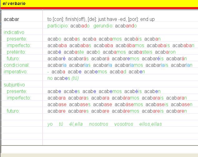 Замечательная Java программа для изучения построения слов и глаголов в Испанском языке.